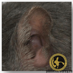 Уши: покрыты темно-серым мехом.